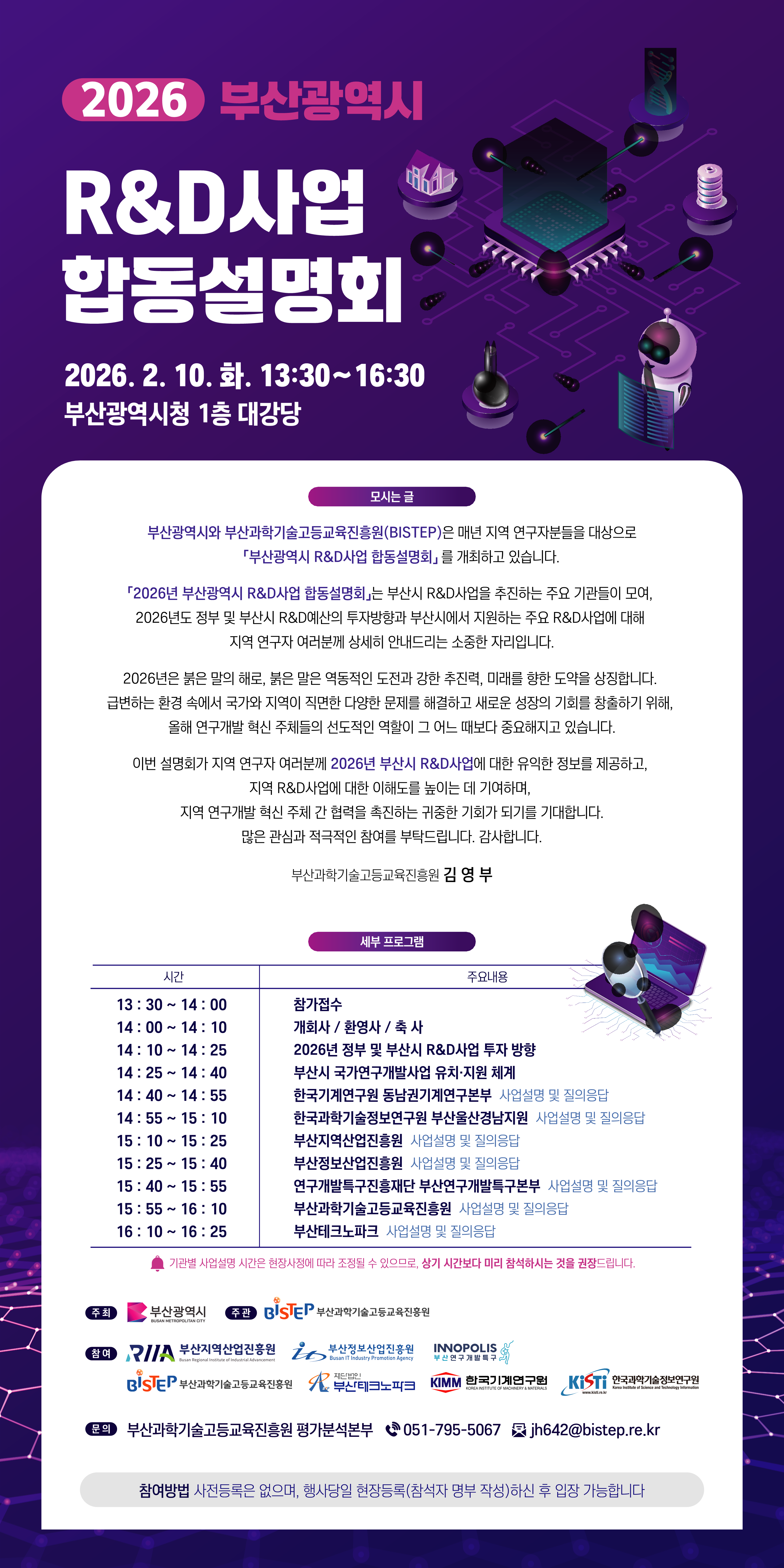2026년 부산 R&D사업 합동설명회를 개최하오니, 많은 참여 부탁드립니다.