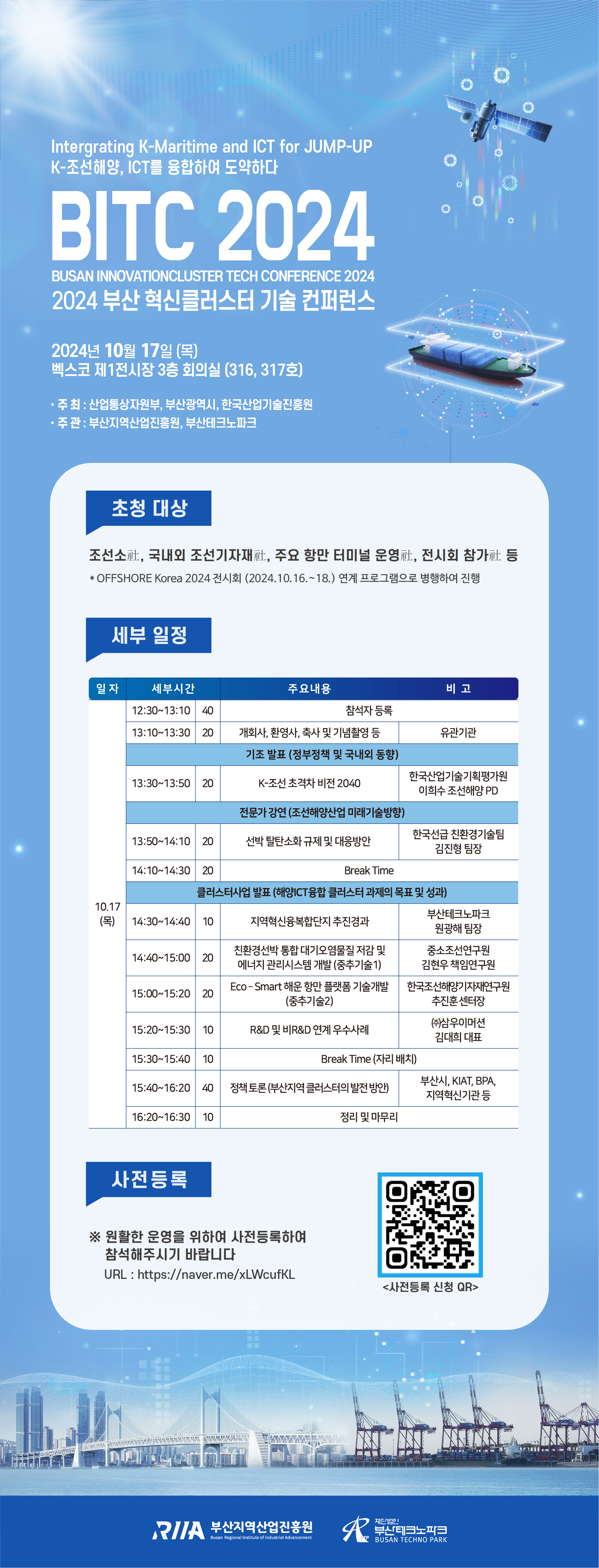 - 장소 : 부산 벡스코 제1전시장 3층, 316~317호 회의실 (부산시 해운대구 APEC로 55)